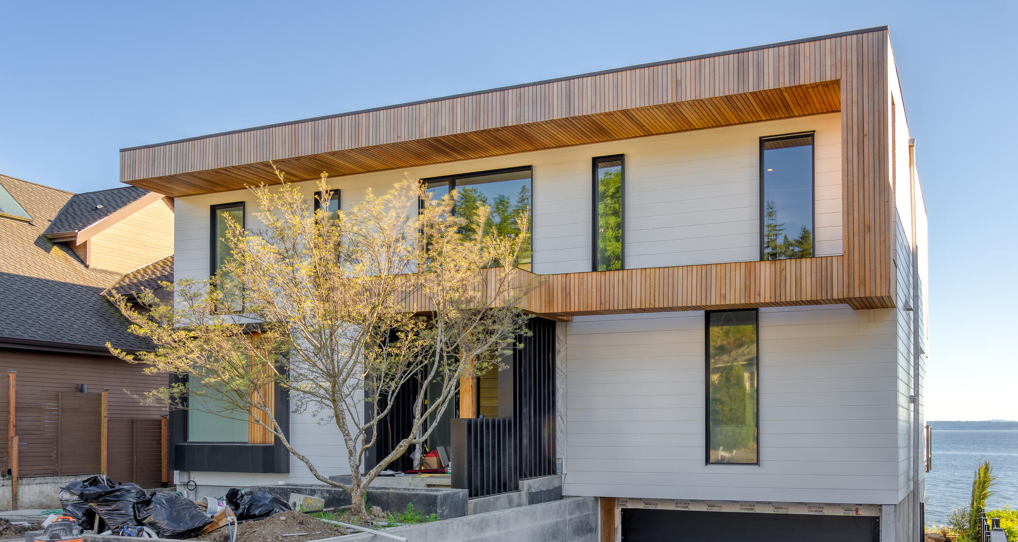House in Seattle (USA) overlooking the bay, designed in close coordination with a local team and adapted to incorporate pre-purchased construction elements.