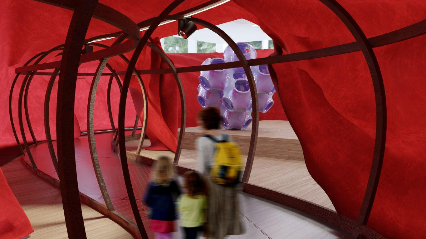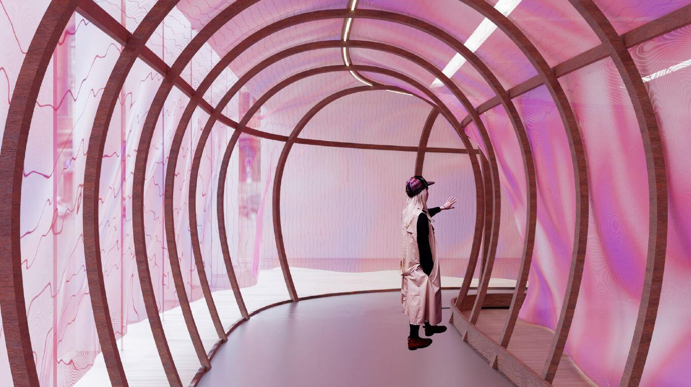 A flexible and sustainable exhibition space designed for Fondazione Prada, merging cultural storytelling, local tradition and material reuse. Inspired by the form of traditional “Lucia” boats and natural skeletal structures.