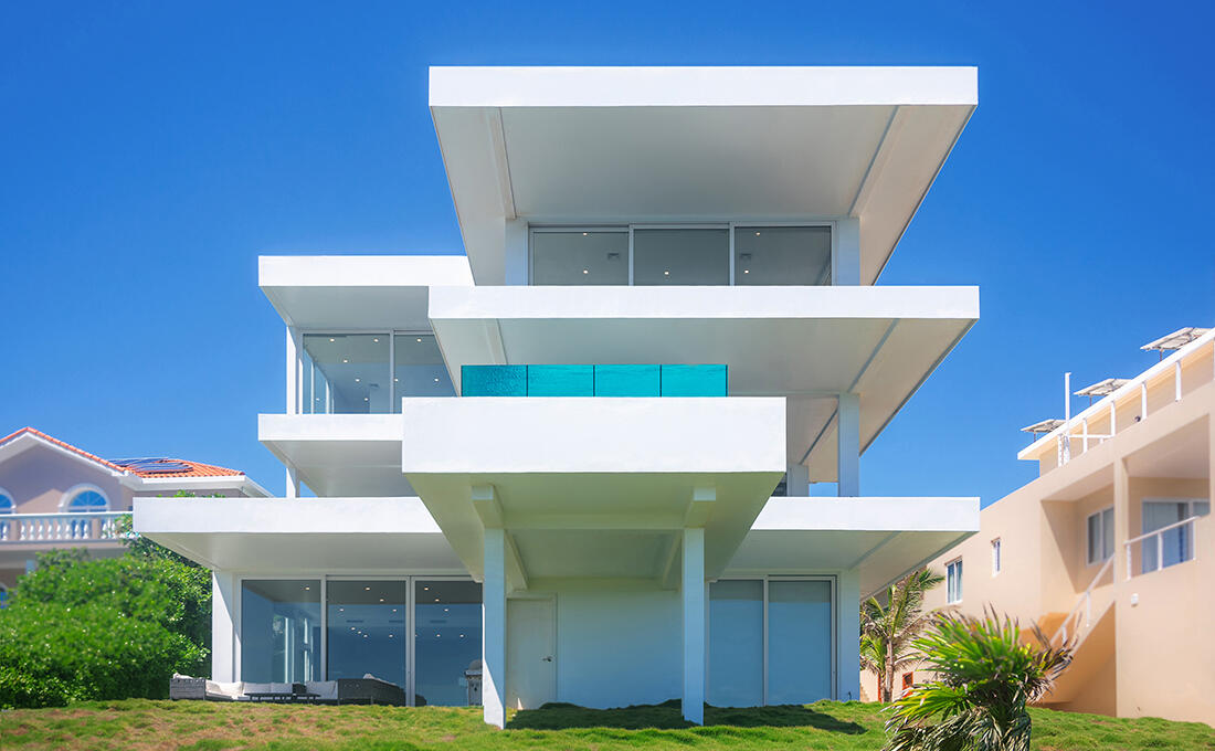 Single-family villa located on the island of Roatán (Honduras). The project blends contemporary architecture with tropical vernacular influences, using clean volumes, large openings and natural materials to connect the house with its lush surroundings and sea views.