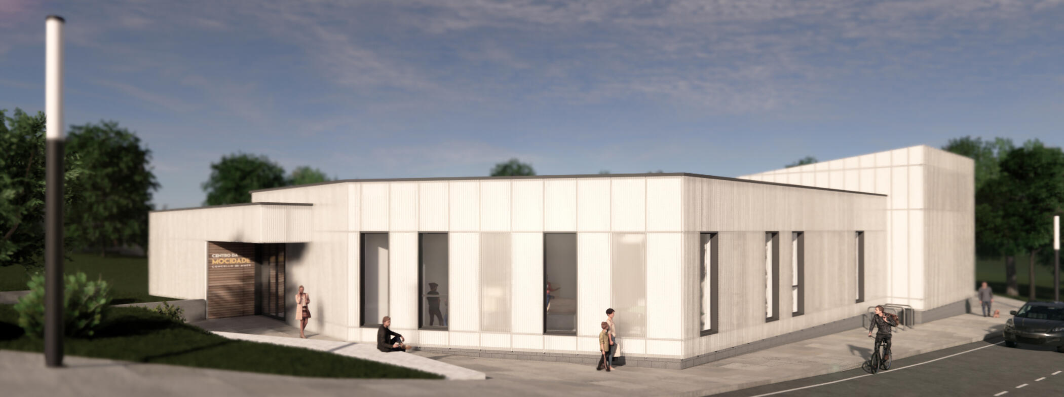 Youth Center in Ames (Spain), designed around a central courtyard and clad in translucent polycarbonate, offering flexible interior spaces and a vibrant relationship with the local community.